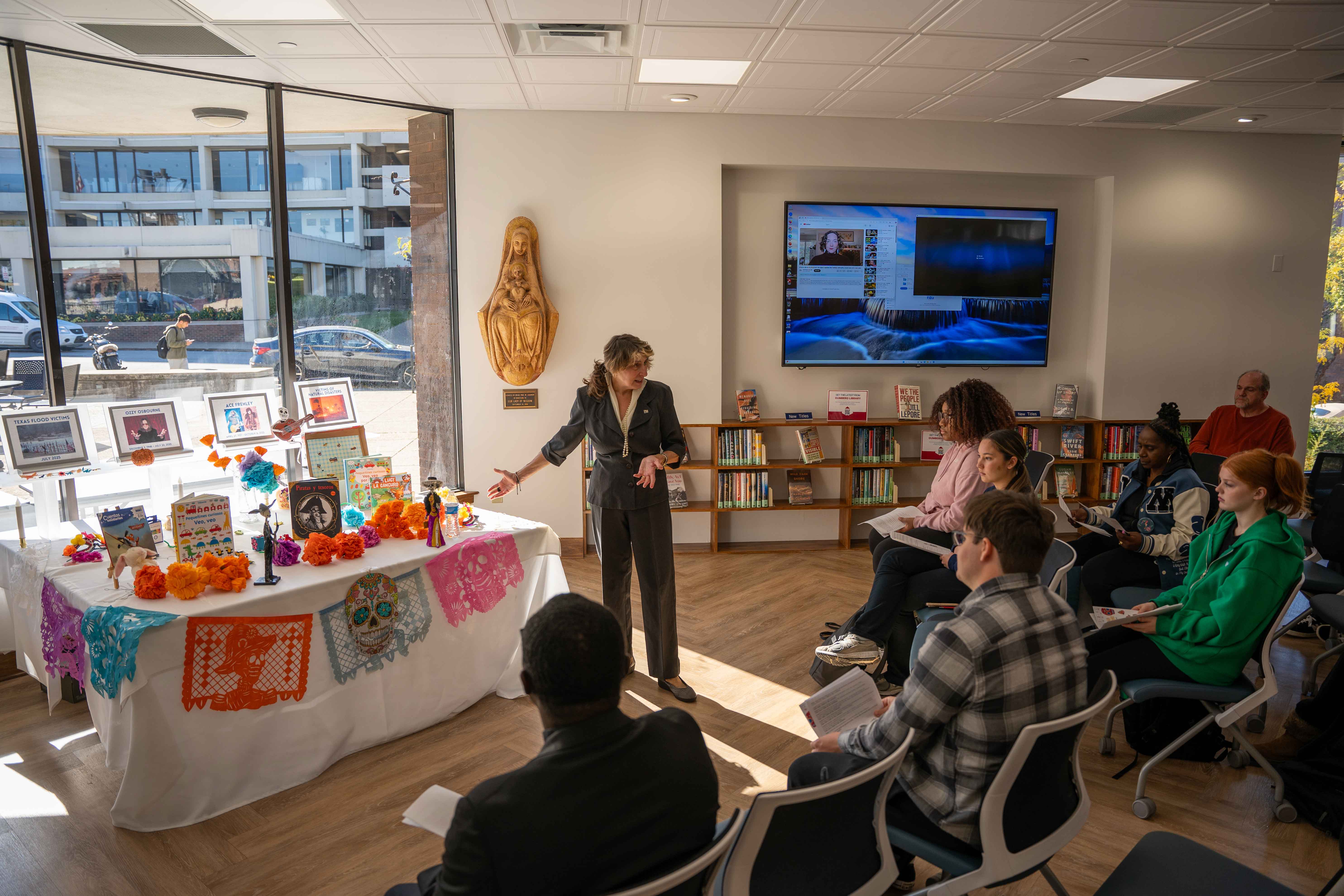Thanks to your generosity, last year we offered meaningful programs and exhibits that sparked dialogue and enriched our community. One highlight was What We Brought with Us, an exhibit that featured photos of personal objects refugees carried as they fled persecution—each item offering a moving testament to resilience in the face of suffering and war. Our Día de los Muertos celebration included an altar blessing by Fr. Simon Adu-Gyamfi along with student presentations on the holiday’s history and significance in Latin American and U.S. traditions. Your generosity further sustained the Gumberg Library Student Endowed Scholarship, created 21 years ago by library employees as a way to honor the role of student workers in achieving the library’s mission. Together, these initiatives demonstrate our commitment to building meaningful partnerships and enriching the educational experience for our entire community.